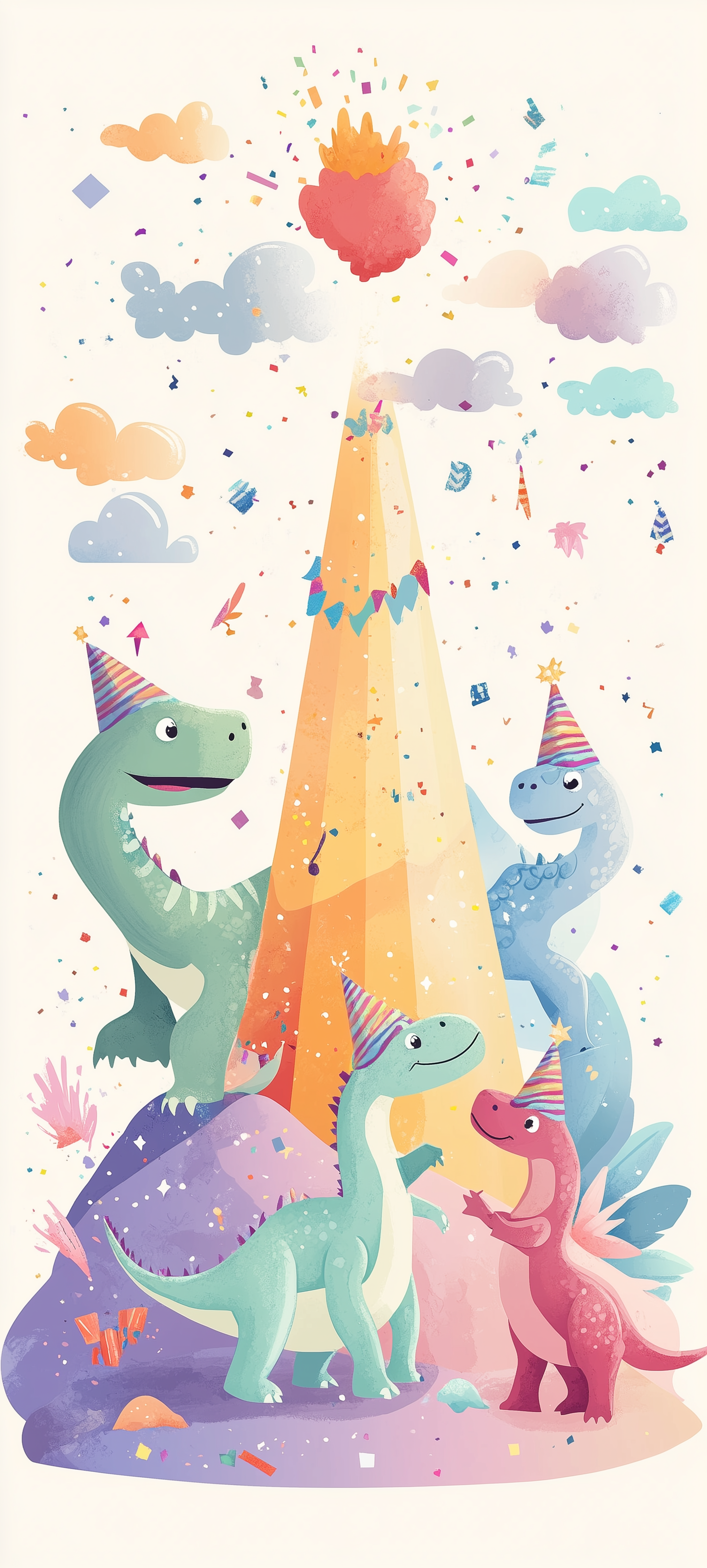 Here’s a cute 4K HD iPhone wallpaper showing dinosaurs having a party around this volcano. They probably think it’s a ginormous party hat!